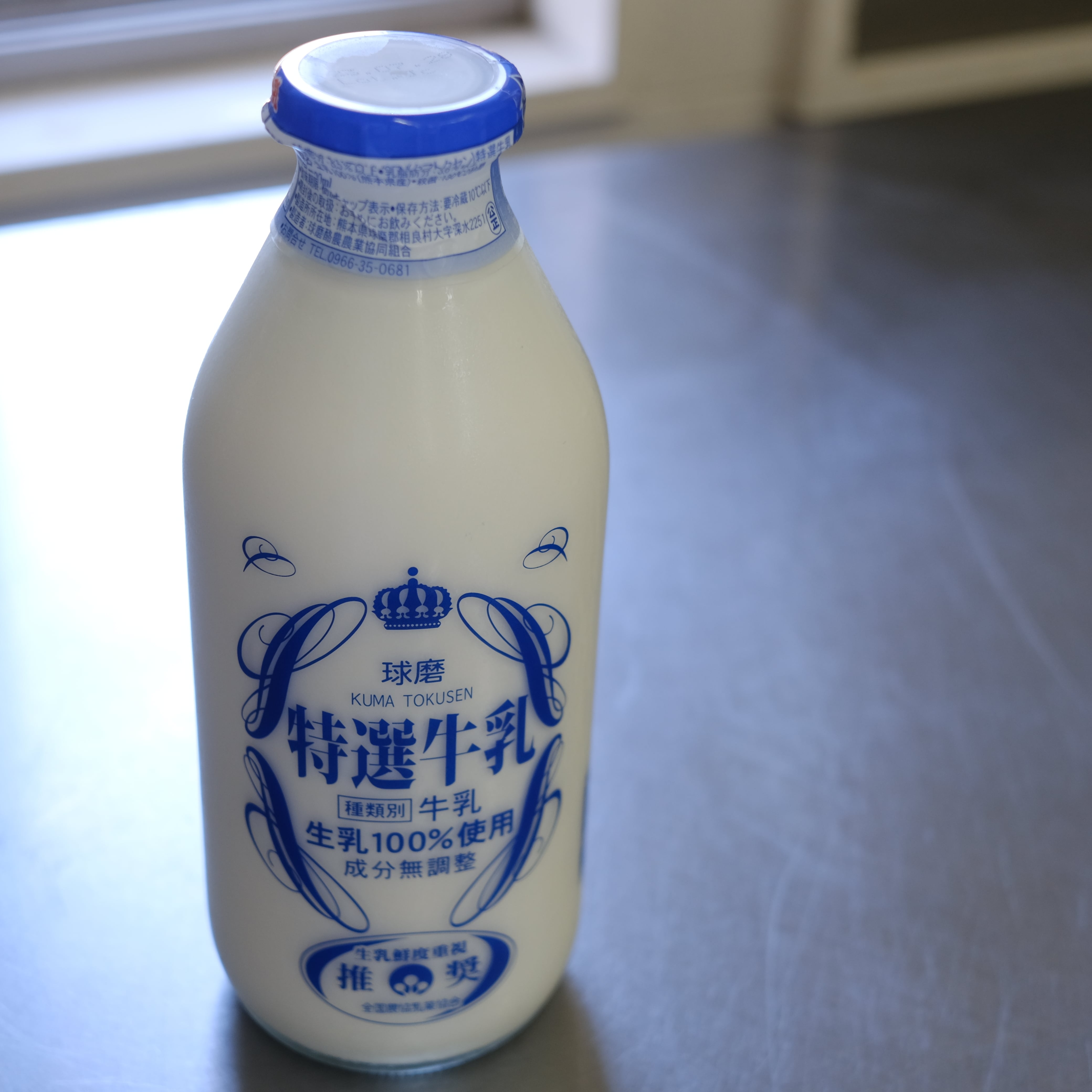豊かな自然とストレスの少ない環境で育った乳牛から搾った「球磨酪農特選牛乳」を使用。